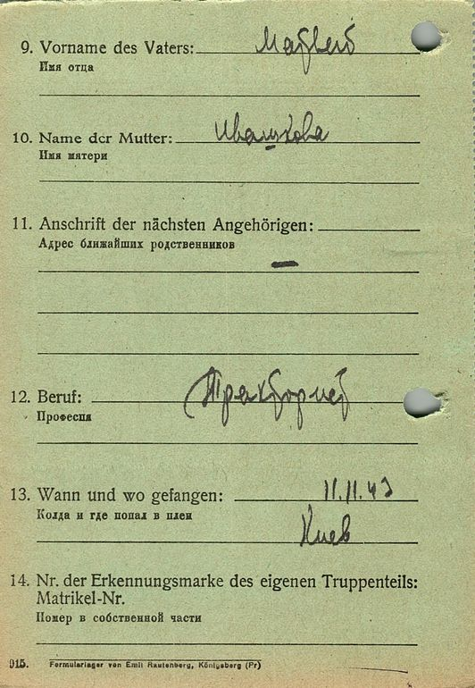 Военнопленные, трофейные карточки. Киевская обл.