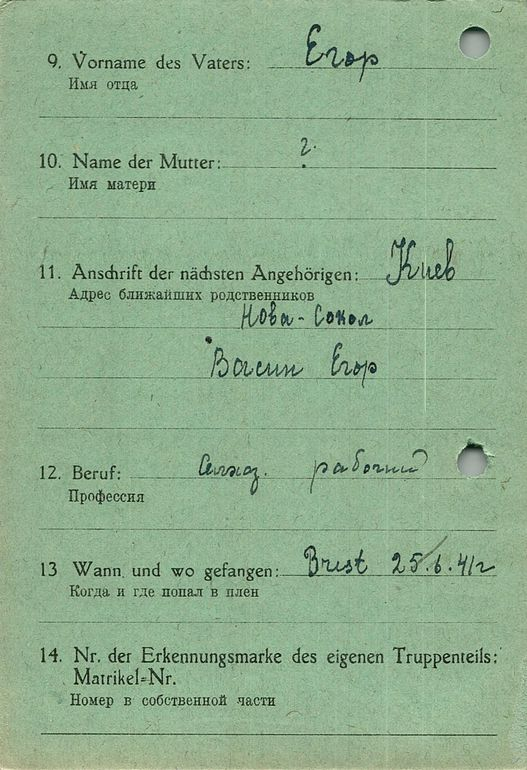 Военнопленные, трофейные карточки. Киевская обл.