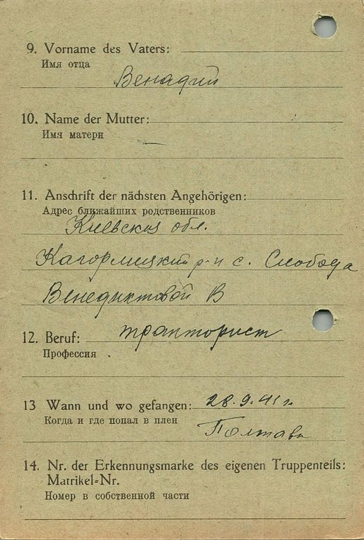 Военнопленные, трофейные карточки. Киевская обл.
