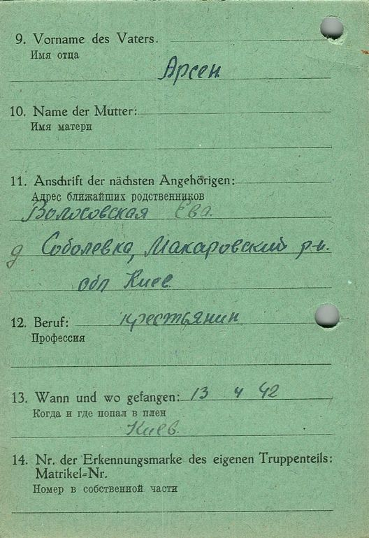 Военнопленные, трофейные карточки. Киевская обл.
