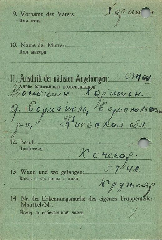 Военнопленные, трофейные карточки. Киевская обл.