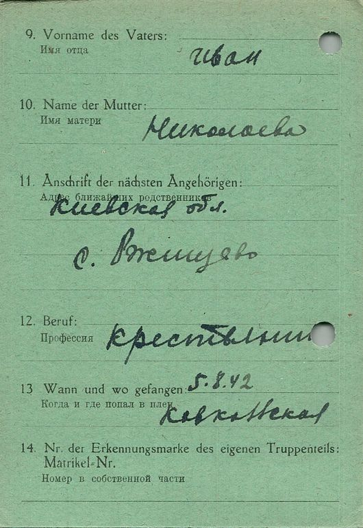 Военнопленные, трофейные карточки. Киевская обл.