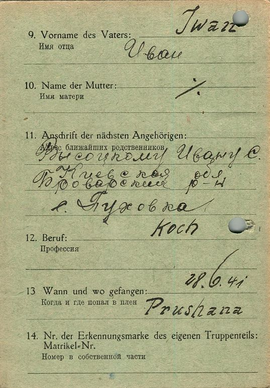 Военнопленные, трофейные карточки. Киевская обл.