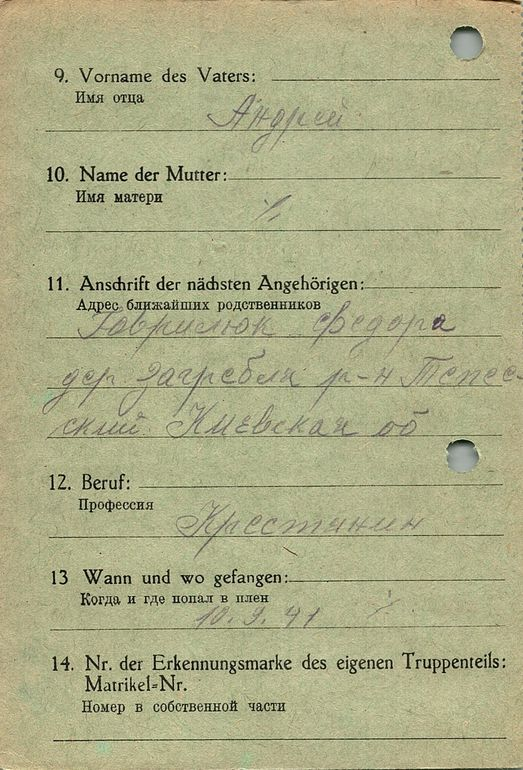 Военнопленные, трофейные карточки. Киевская обл.