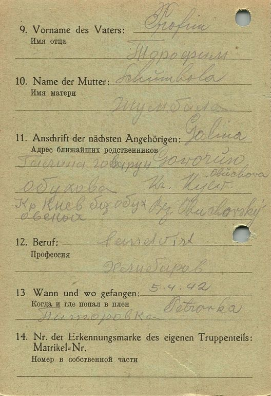 Военнопленные, трофейные карточки. Киевская обл.