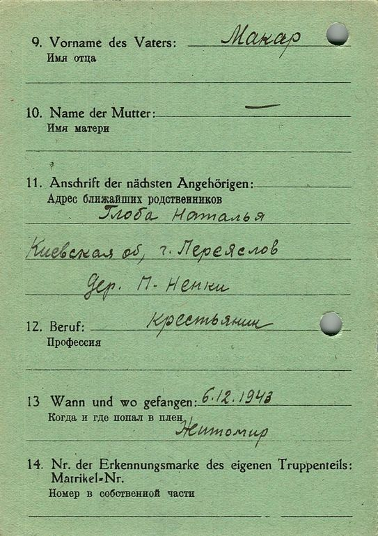 Военнопленные, трофейные карточки. Киевская обл.