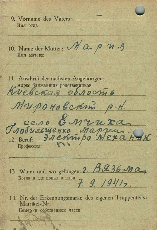 Военнопленные, трофейные карточки. Киевская обл.