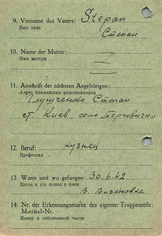 Военнопленные, трофейные карточки. Киевская обл.
