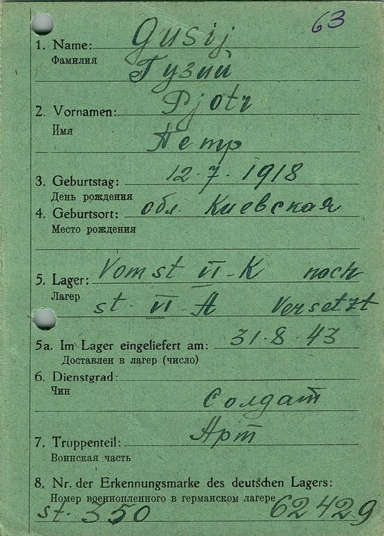 Военнопленные, трофейные карточки. Киевская обл.