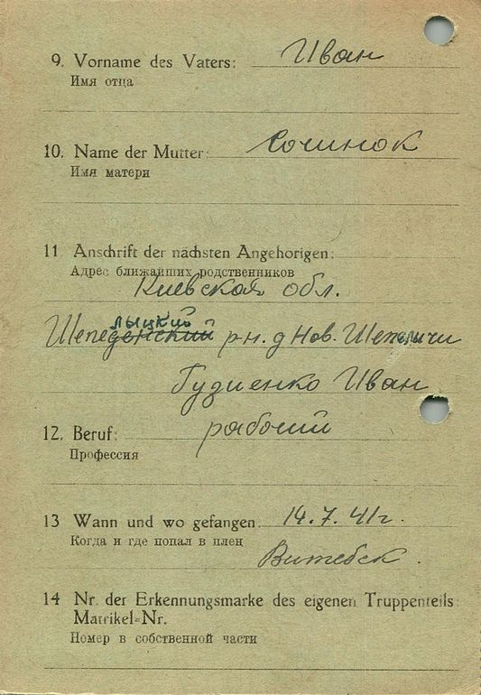 Военнопленные, трофейные карточки. Киевская обл.