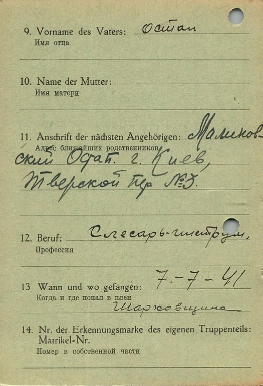 Военнопленные, трофейные карточки. Киевская обл.