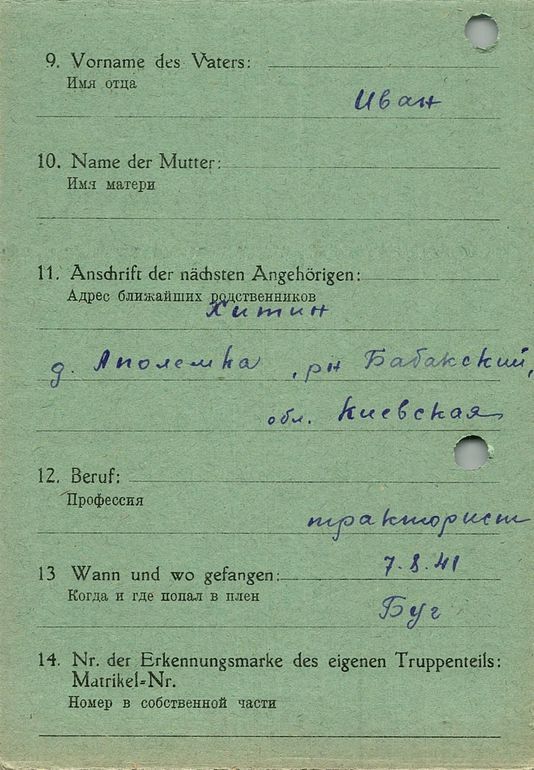 Военнопленные, трофейные карточки. Киевская обл.