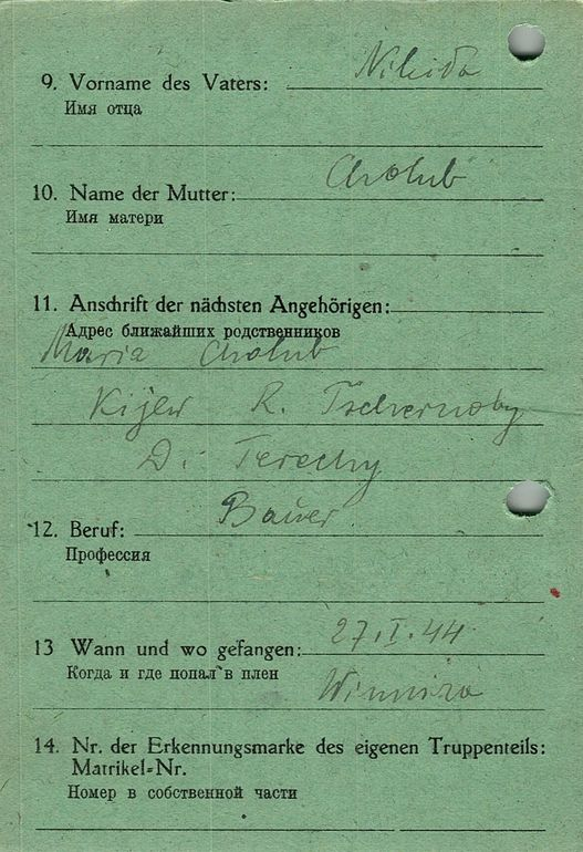Военнопленные, трофейные карточки. Киевская обл.