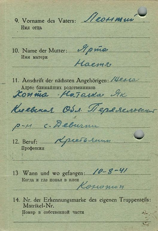 Военнопленные, трофейные карточки. Киевская обл.