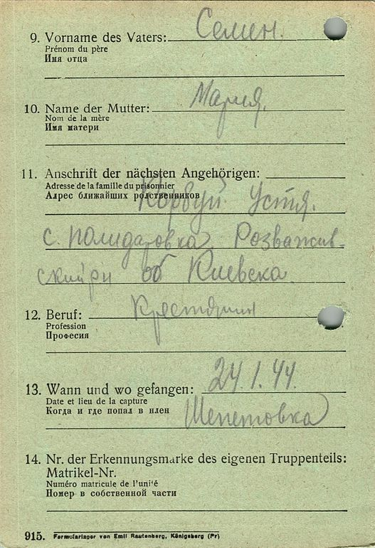 Военнопленные, трофейные карточки. Киевская обл.