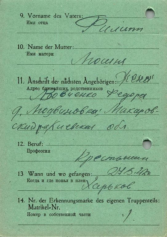 Военнопленные, трофейные карточки. Киевская обл.