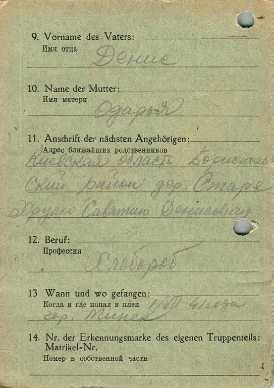Военнопленные, трофейные карточки. Киевская обл.