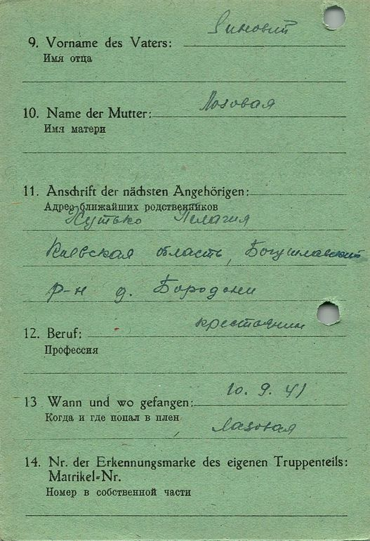 Военнопленные, трофейные карточки. Киевская обл.