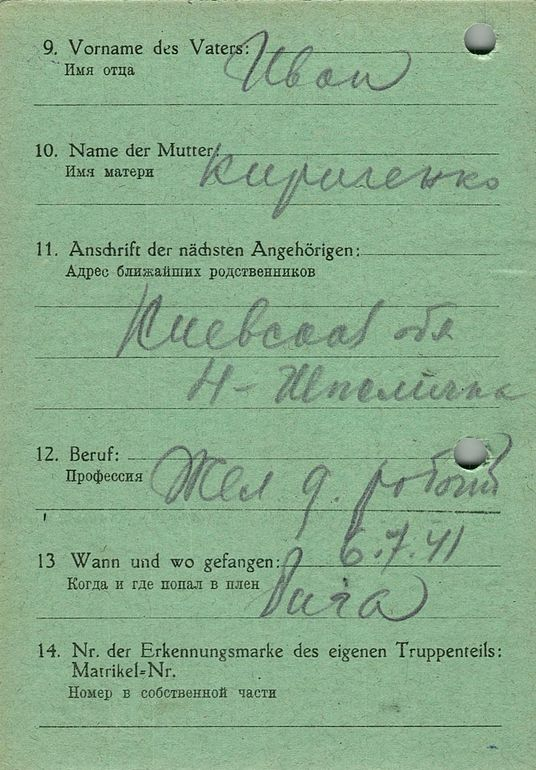 Военнопленные, трофейные карточки. Киевская обл.