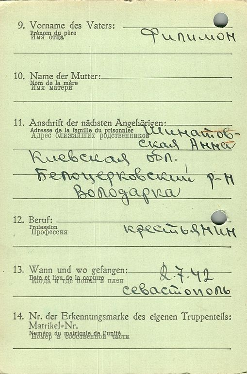 Военнопленные, трофейные карточки. Киевская обл.