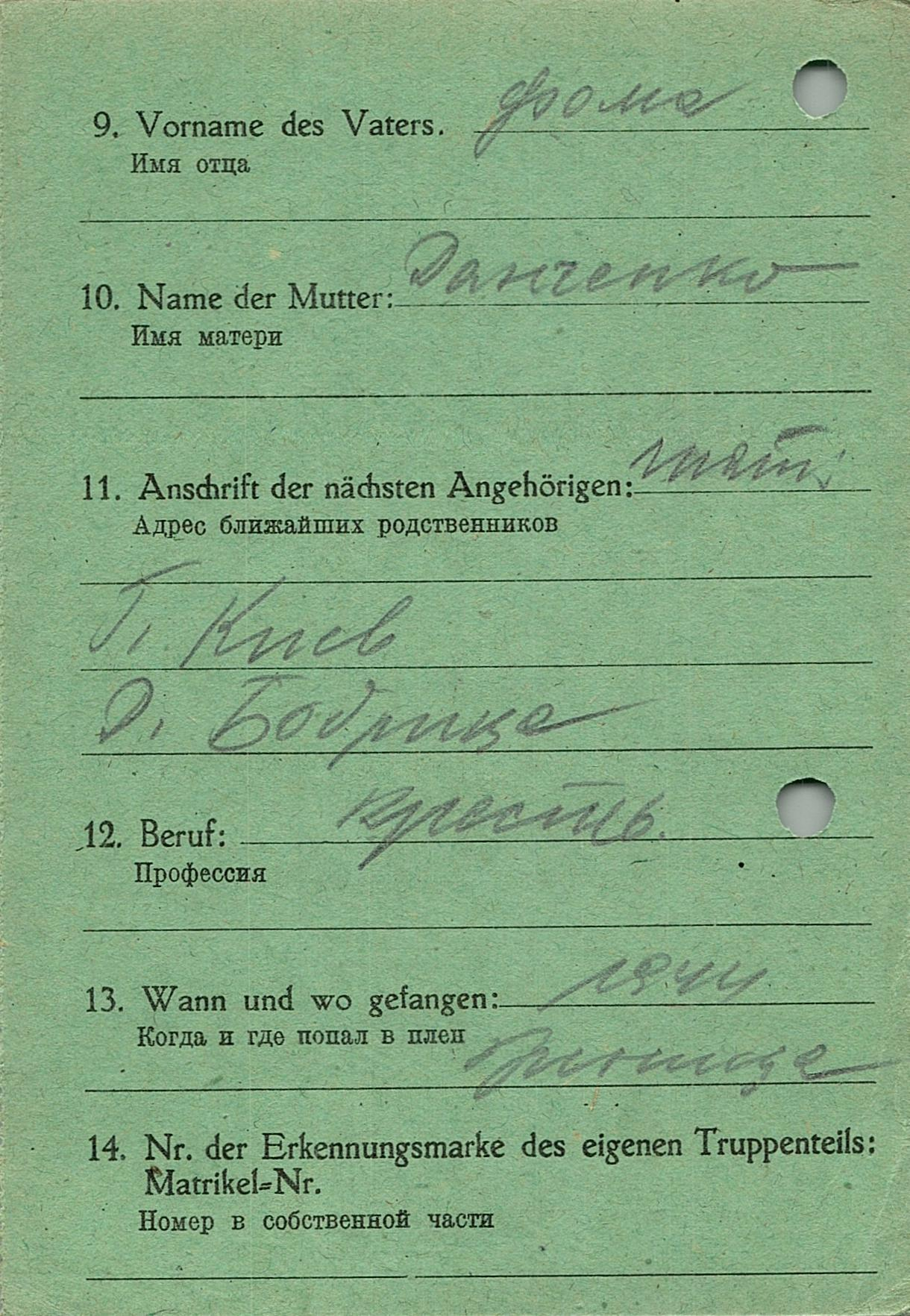 Военнопленные, трофейные карточки. Киевская обл.