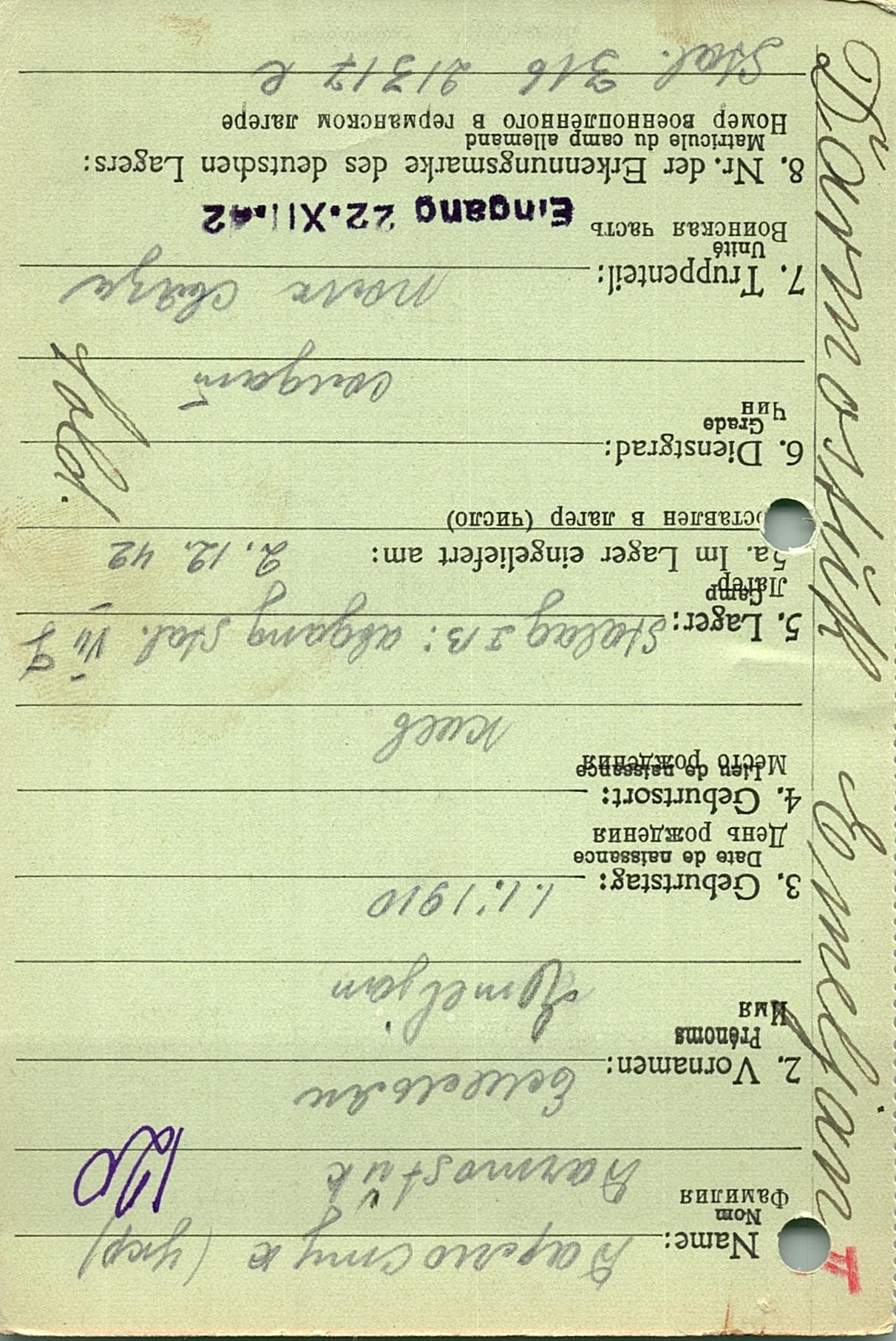 Военнопленные, трофейные карточки. Киевская обл.