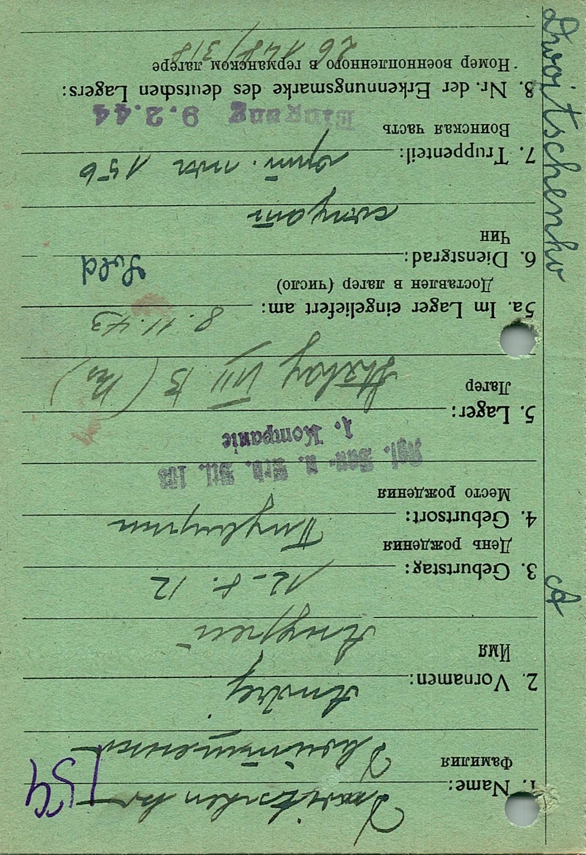 Военнопленные, трофейные карточки. Киевская обл.
