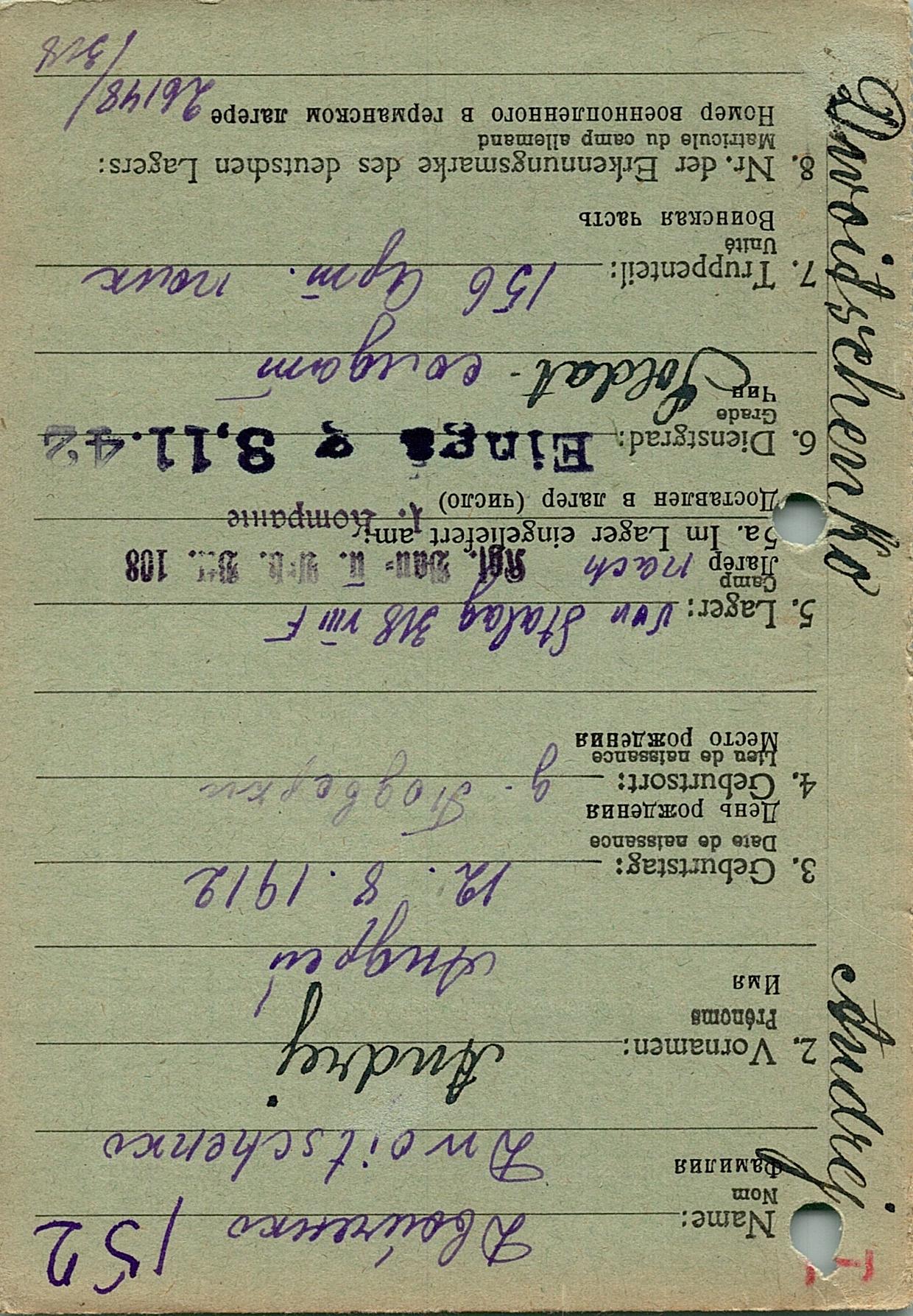 Военнопленные, трофейные карточки. Киевская обл.
