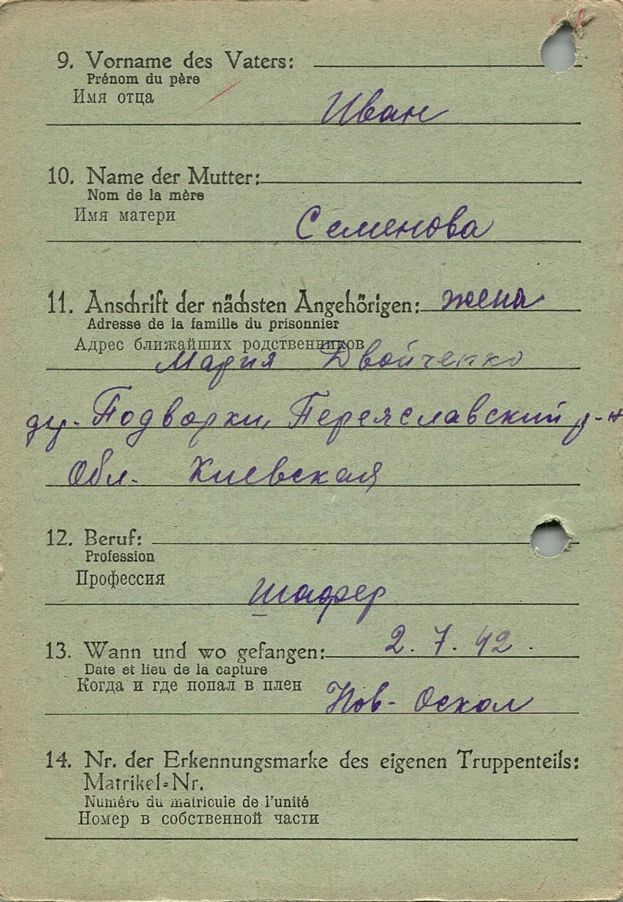Военнопленные, трофейные карточки. Киевская обл.