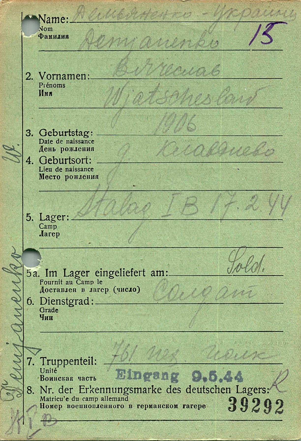 Военнопленные, трофейные карточки. Киевская обл.