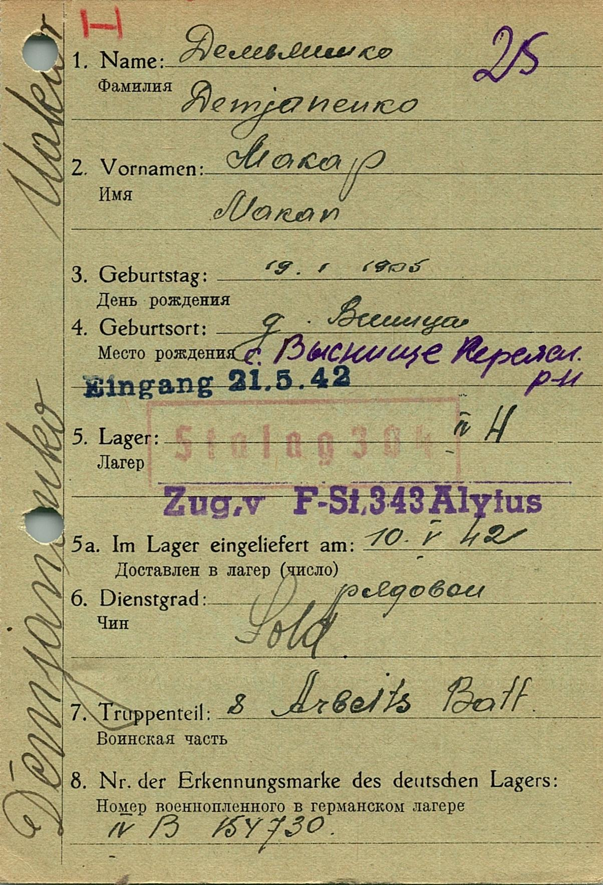 Военнопленные, трофейные карточки. Киевская обл.