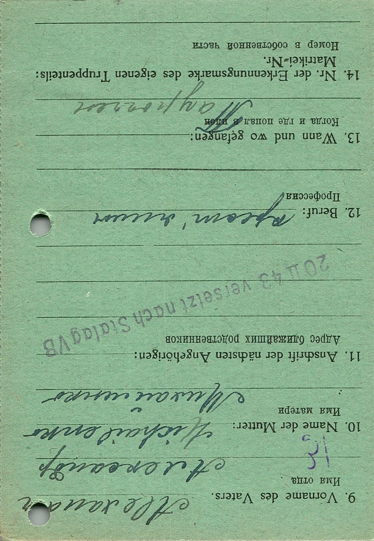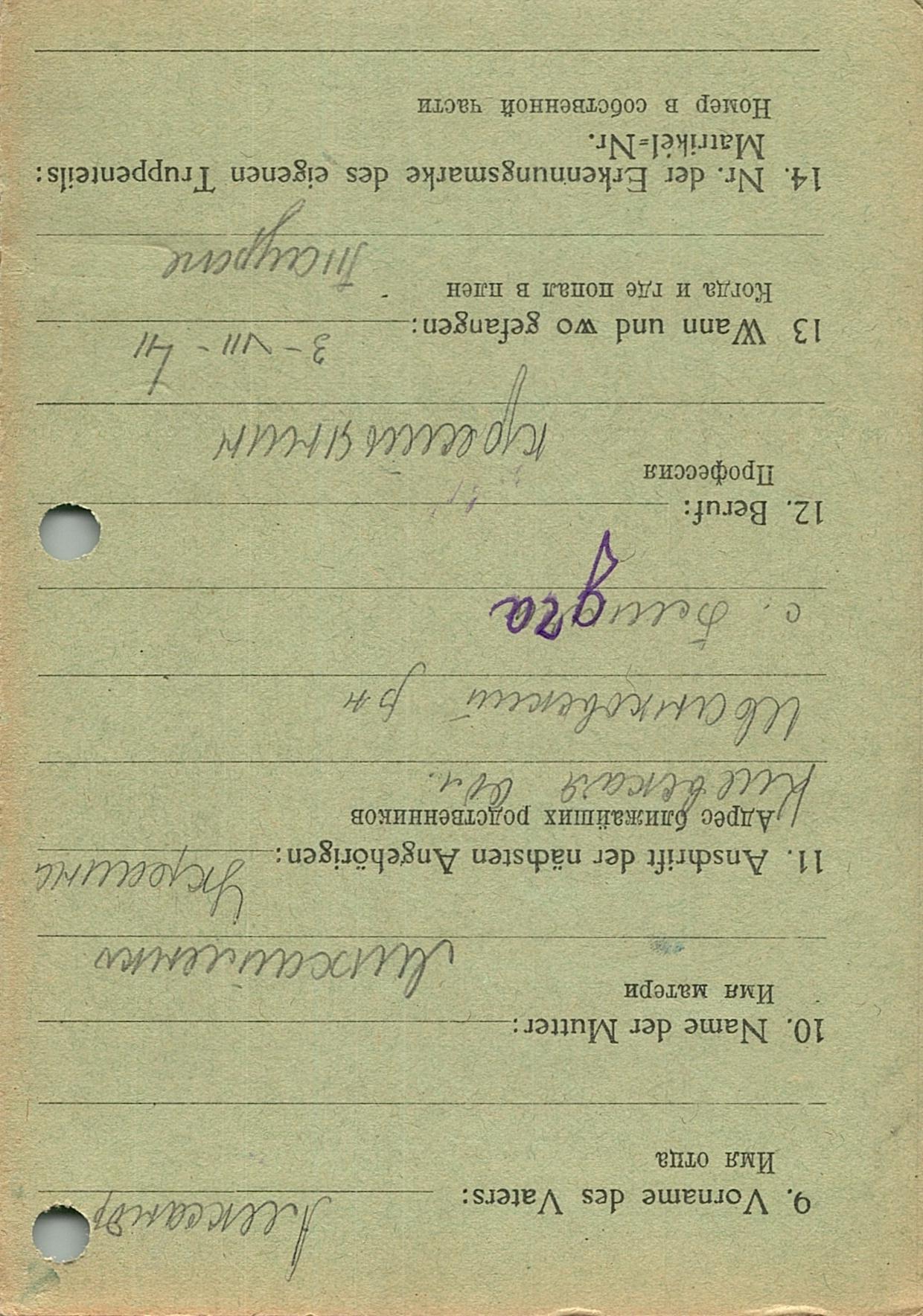 Военнопленные, трофейные карточки. Киевская обл.