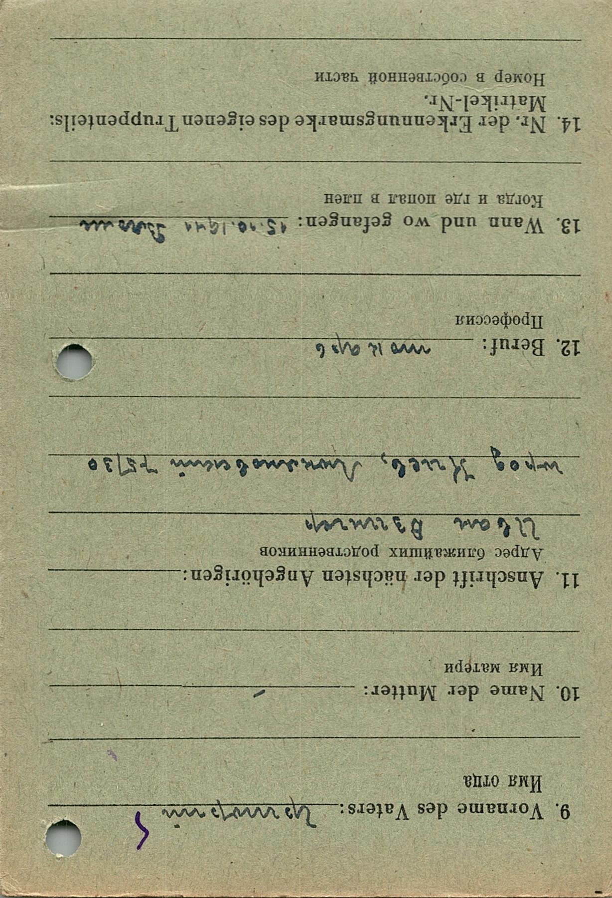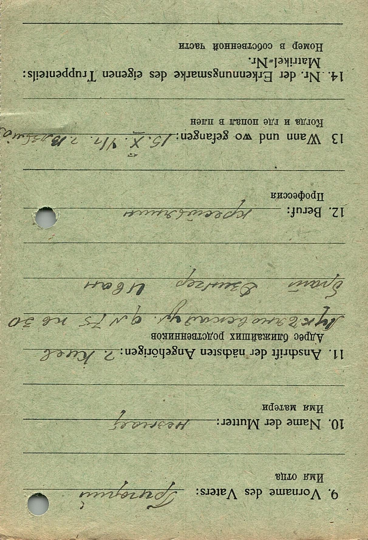 Военнопленные, трофейные карточки. Киевская обл.
