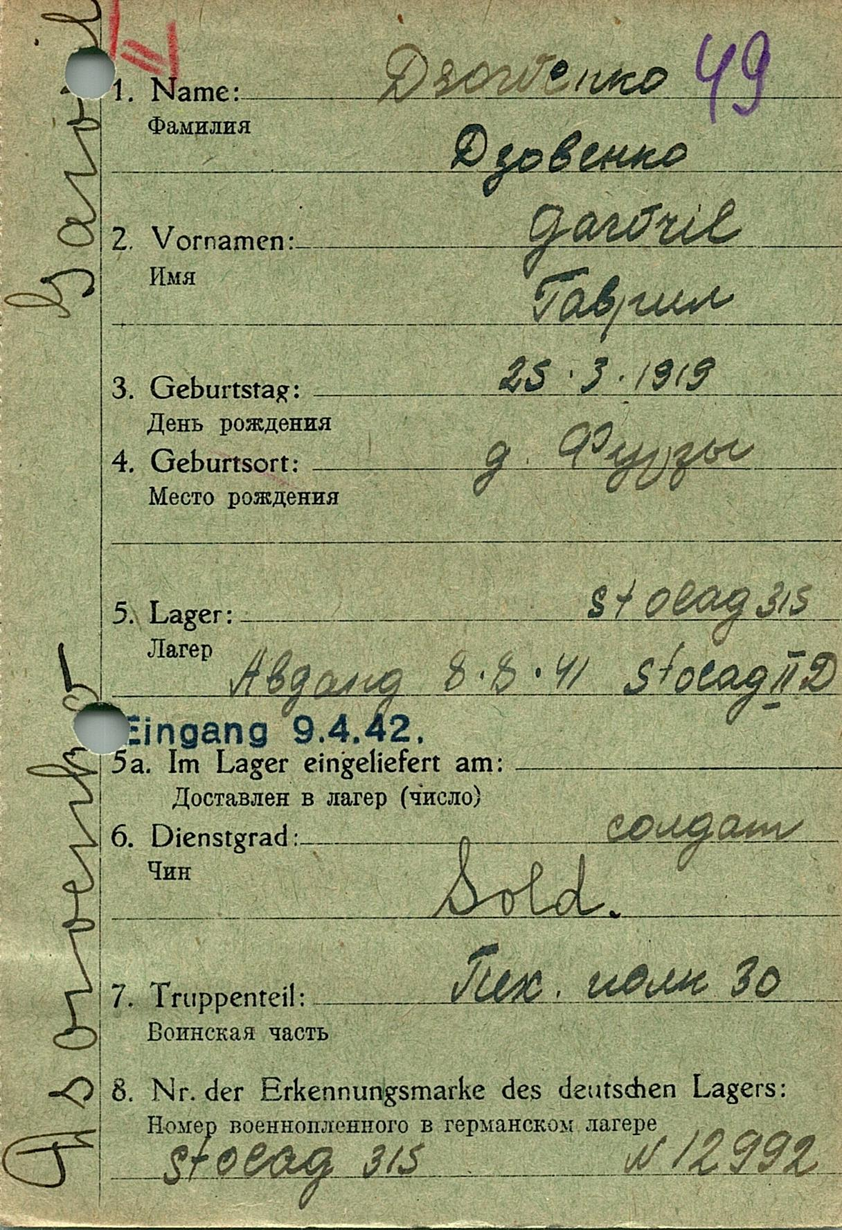 Военнопленные, трофейные карточки. Киевская обл.