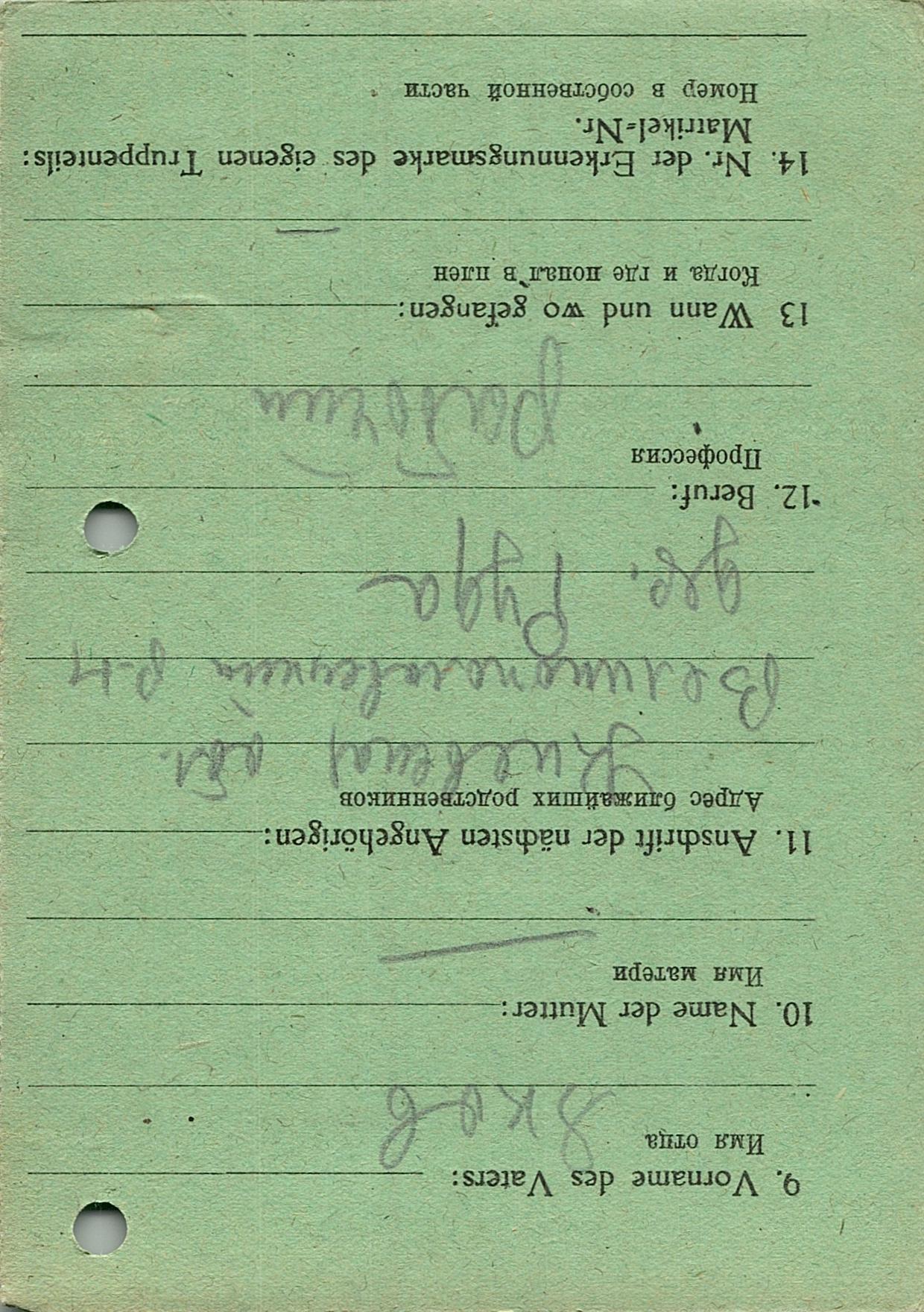 Военнопленные, трофейные карточки. Киевская обл.