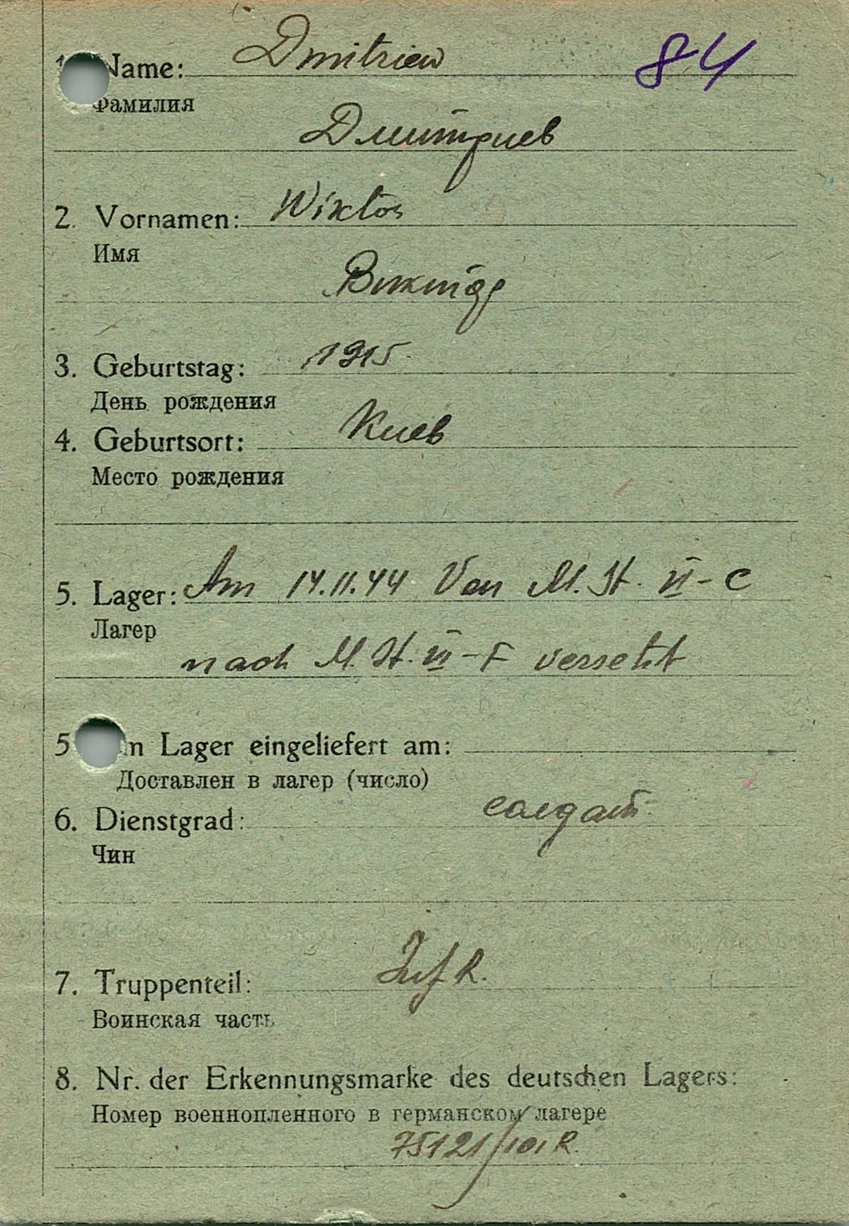 Военнопленные, трофейные карточки. Киевская обл.
