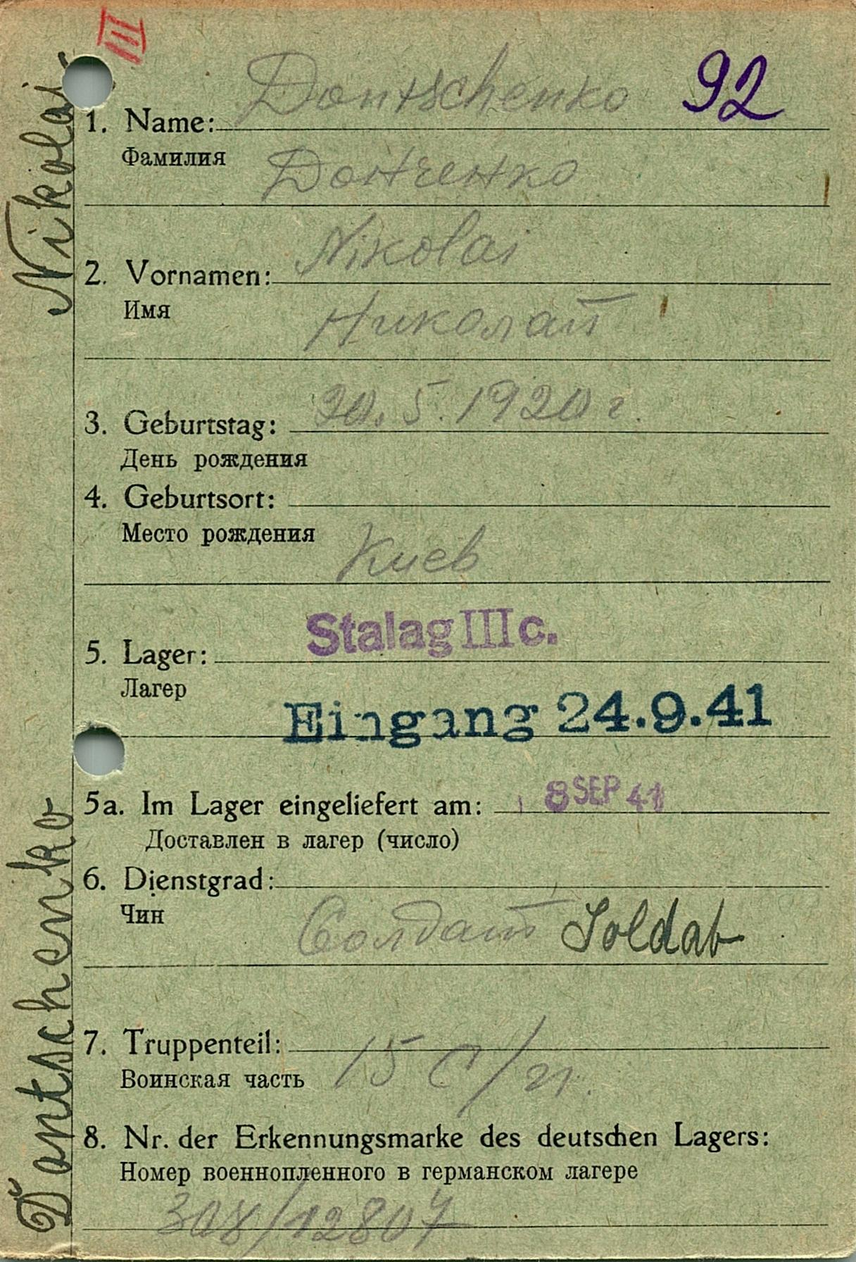 Военнопленные, трофейные карточки. Киевская обл.