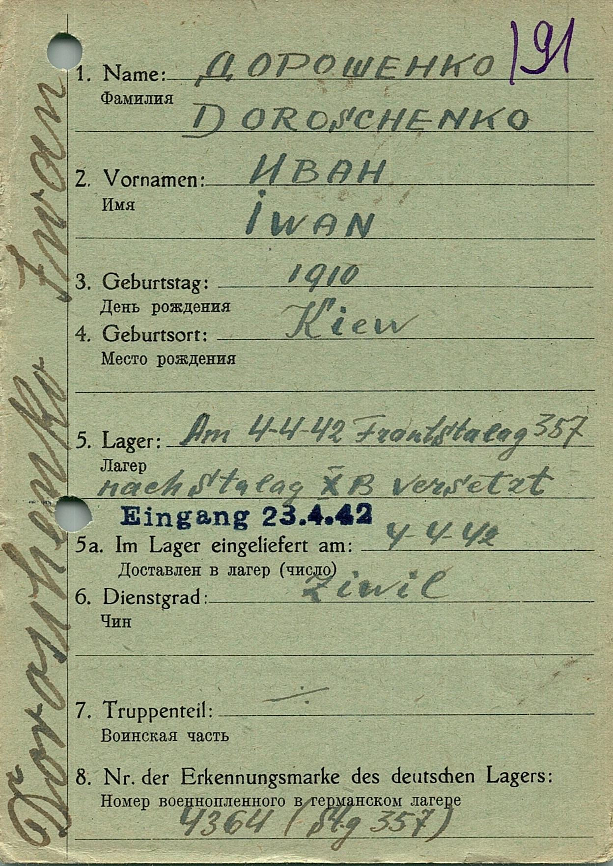Военнопленные, трофейные карточки. Киевская обл.