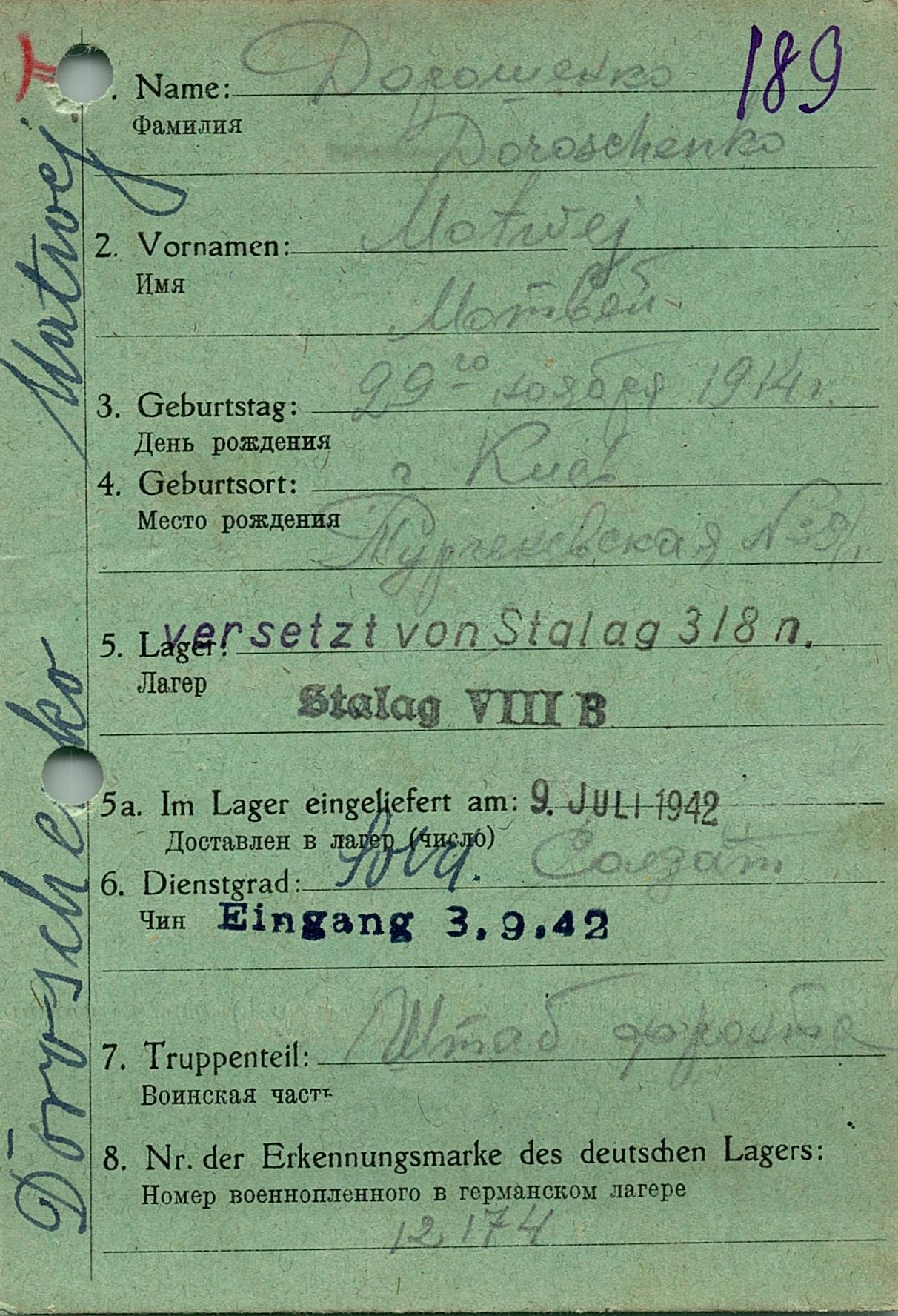 Военнопленные, трофейные карточки. Киевская обл.