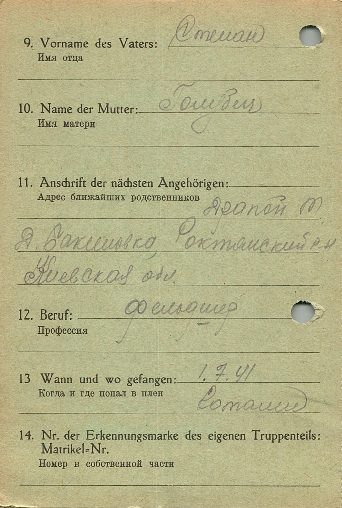 Военнопленные, трофейные карточки. Киевская обл.