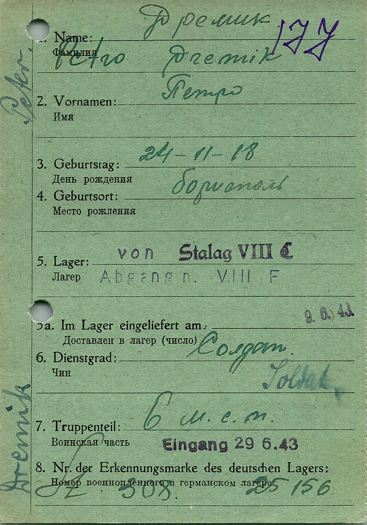 Военнопленные, трофейные карточки. Киевская обл.