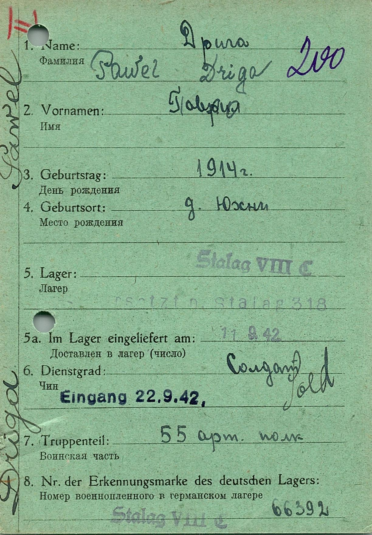Военнопленные, трофейные карточки. Киевская обл.