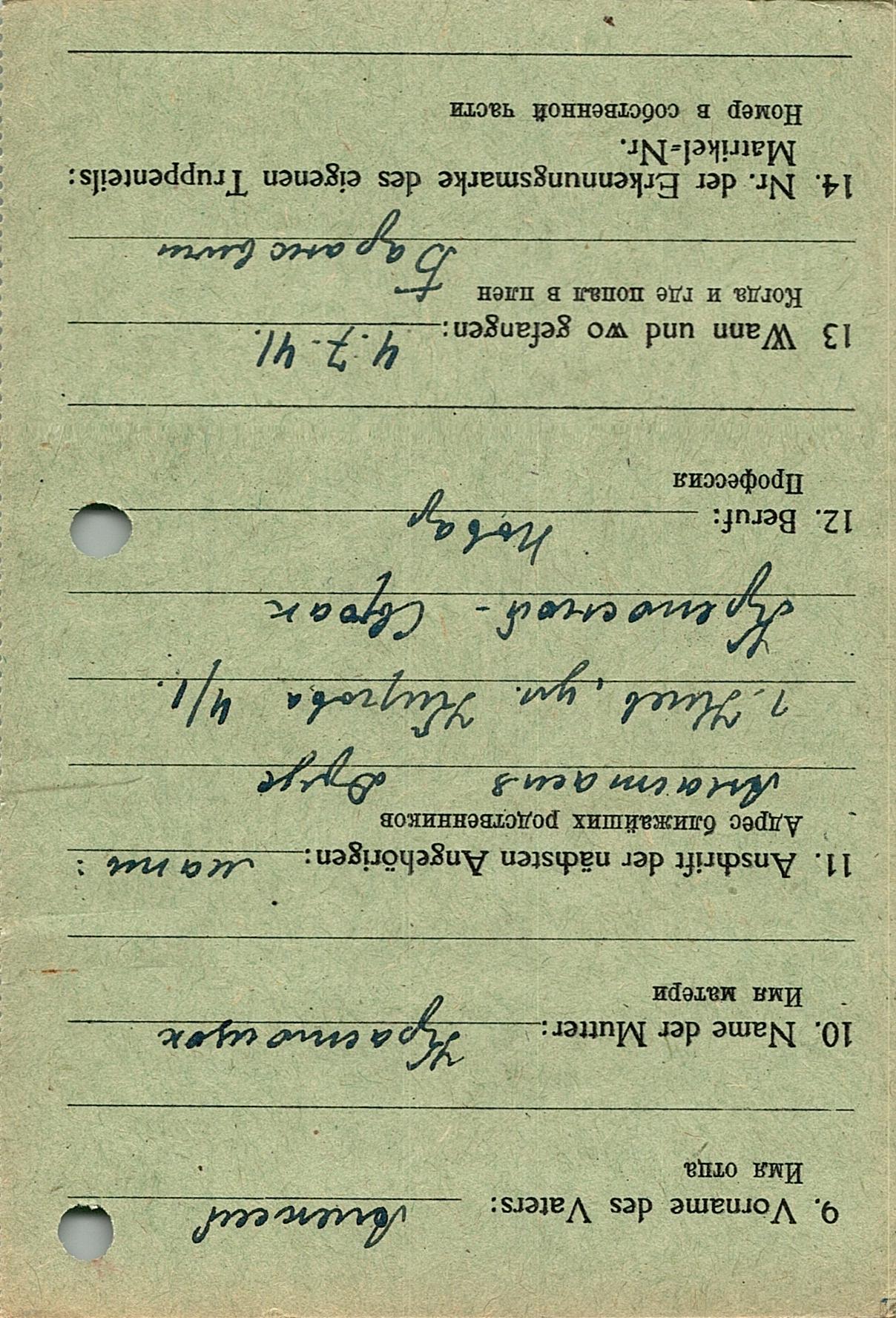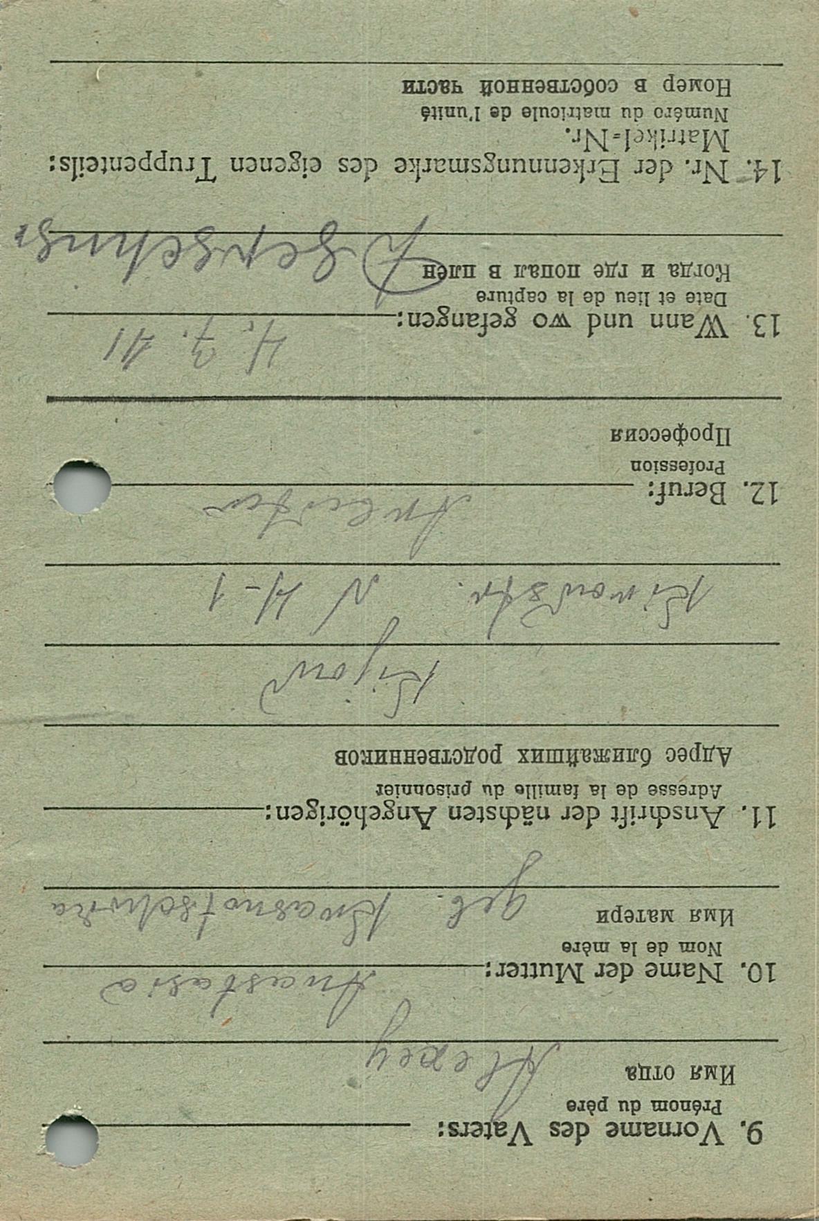 Военнопленные, трофейные карточки. Киевская обл.