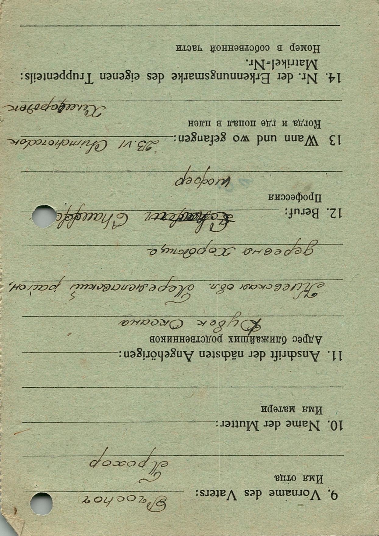 Военнопленные, трофейные карточки. Киевская обл.