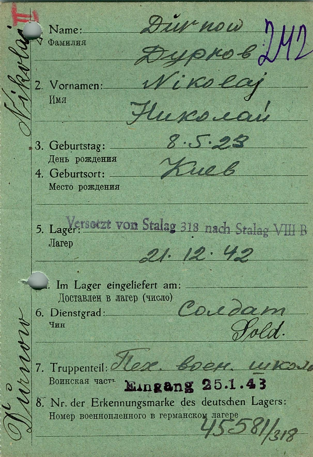 Военнопленные, трофейные карточки. Киевская обл.
