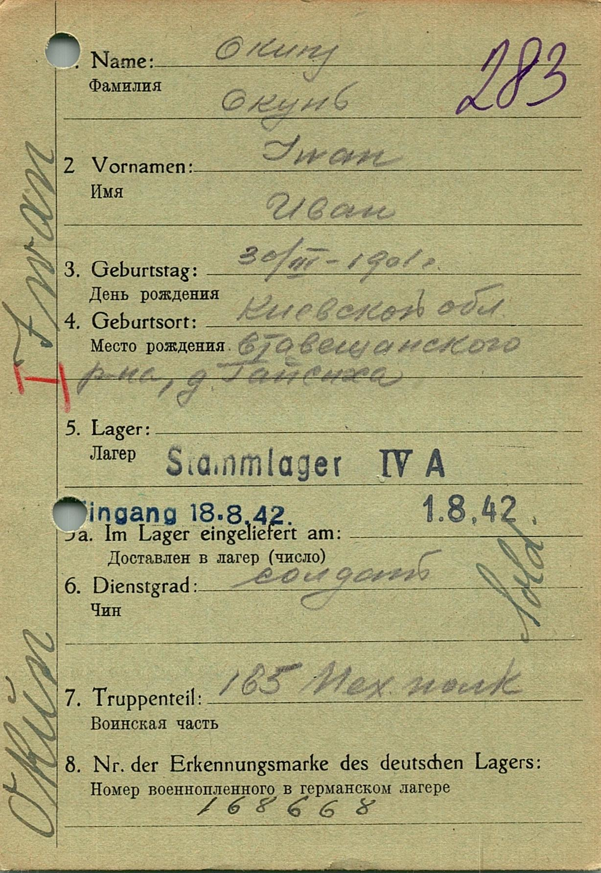 Военнопленные, трофейные карточки. Киевская обл.