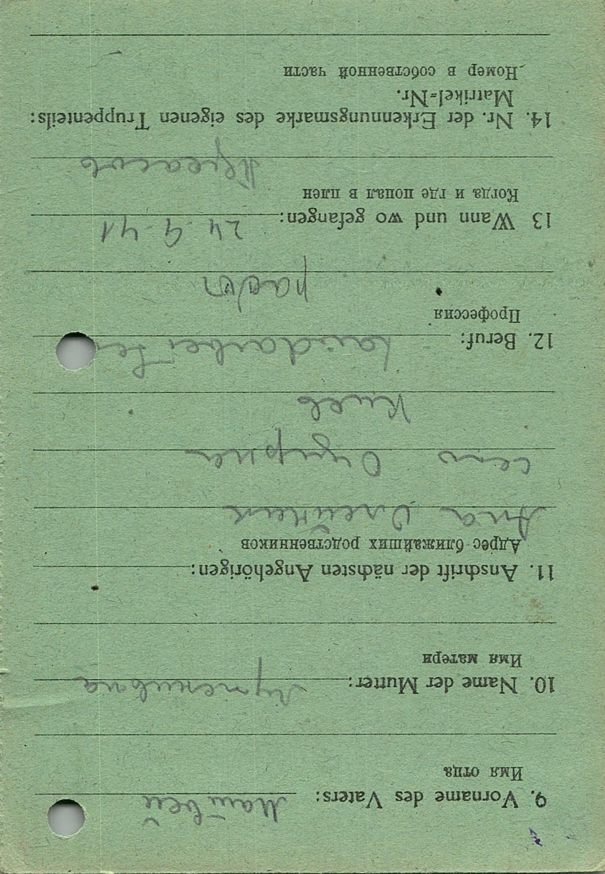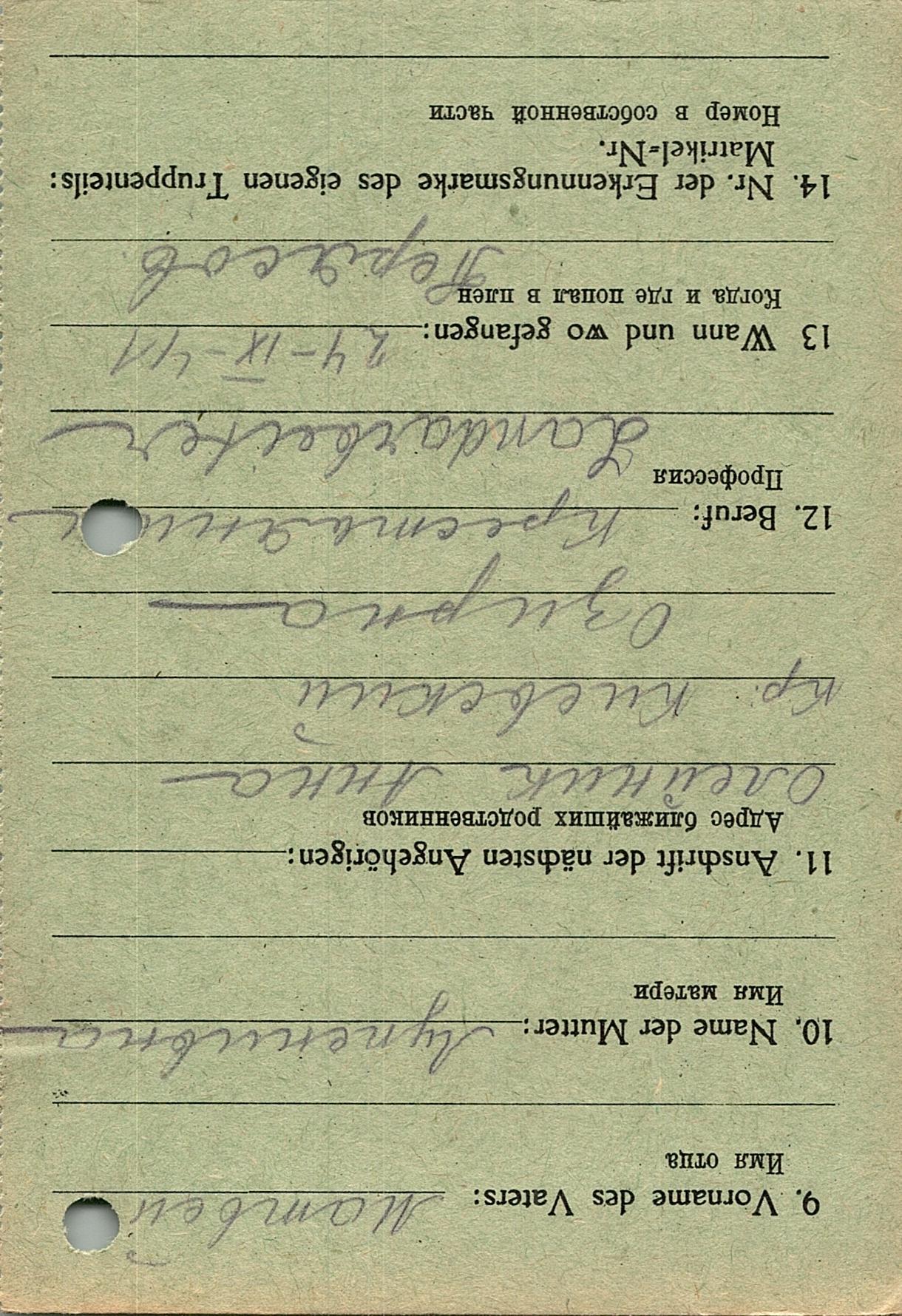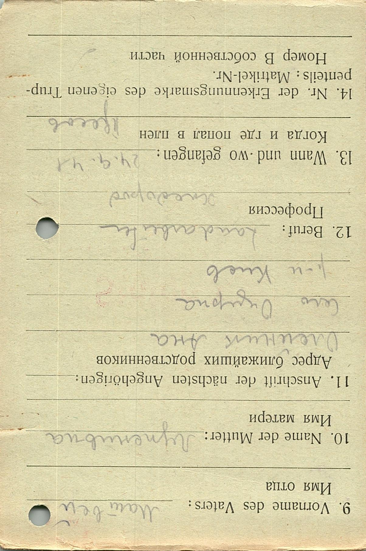 Военнопленные, трофейные карточки. Киевская обл.
