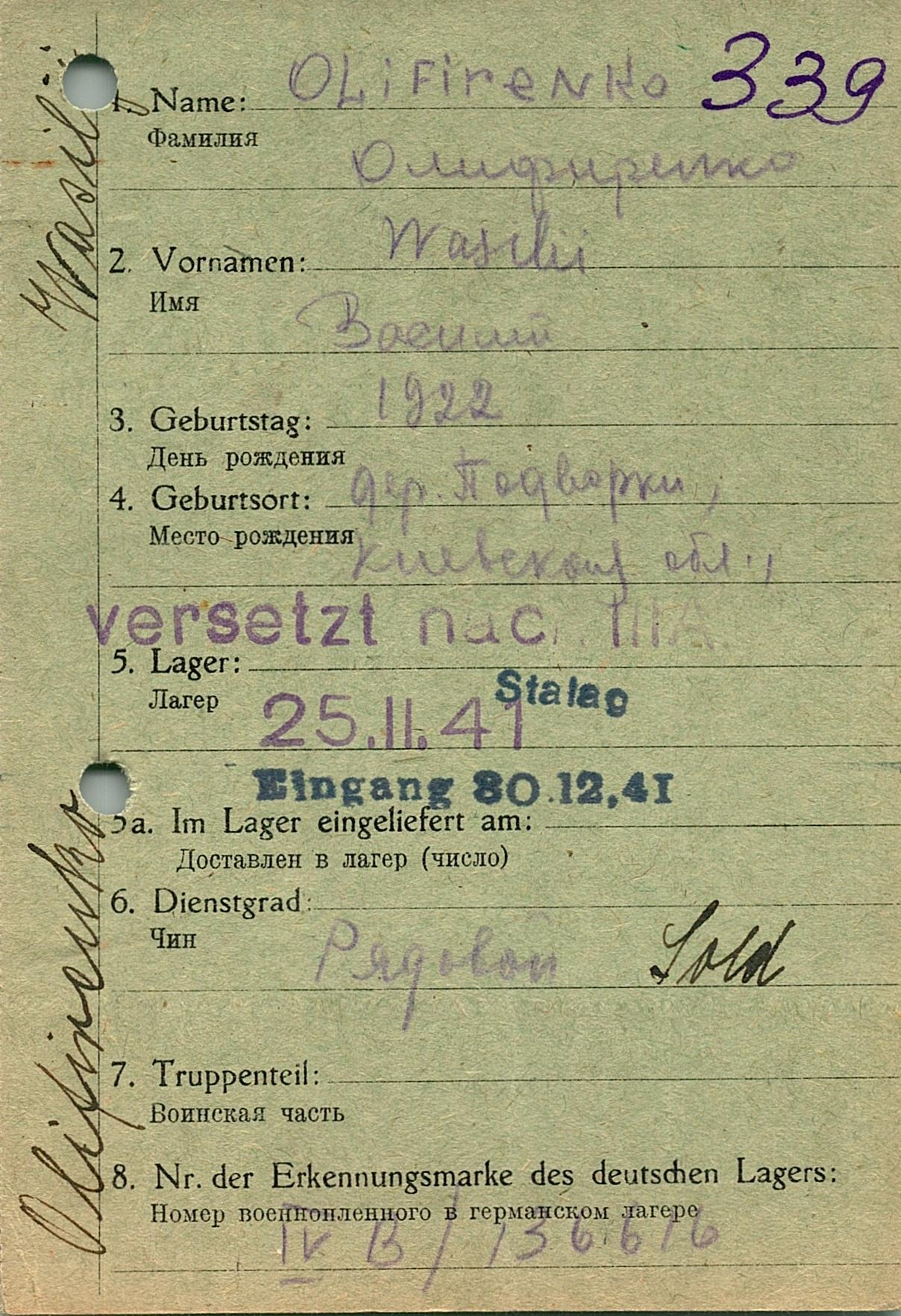 Военнопленные, трофейные карточки. Киевская обл.