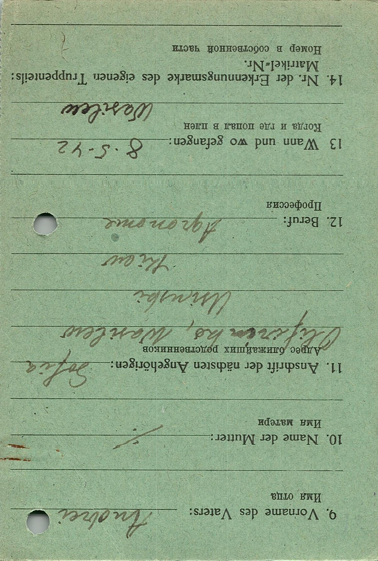Военнопленные, трофейные карточки. Киевская обл.