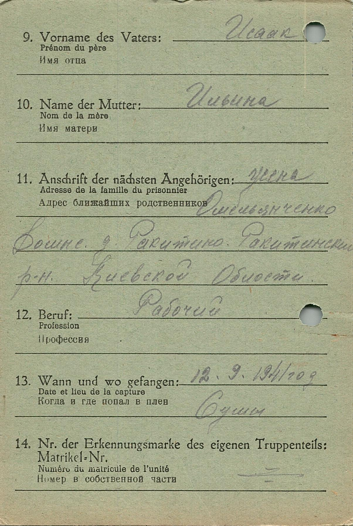 Военнопленные, трофейные карточки. Киевская обл.